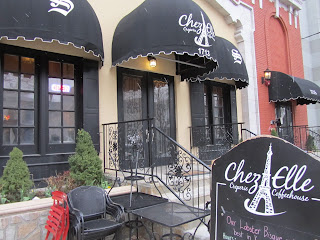 Despite weather reports of impending snow and ice, we left early Sat. AM for Kansas City (3 hours drive) to see the new Princess Diana exhibit. This traveling exhibit will only stop in 2 places in the US, so we had to see it before it moved on! First things first...we stopped for brunch! My daughter Ali lives in KC, so she recommended a cool girls place for lunch. As our GPS was taking us thru a rather sketchy neighborhood, suddenly this charming restaurant appears. After we brunched on yummy crepes, we emerged to find big, chunky (inappropriate at the end of March) snowflakes falling.