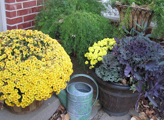 Ah....fall...how I love thee! After our hideously HOT summer, autumn has been such a sweet relief. The plants that survived the summer, like the sweet potato vines, have thrived and look all fat and lovely again. The mums are blooming, and the kales are funky and colorful.