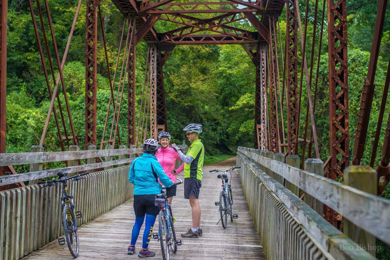 We rode for 3 days, and covered about 120 miles, with frequent stops for snacks, taking pictures and lunch every day. This ride was the perfect excuse to eat and snack all day long. The above pic was a typical view as we enjoyed the very flat trail (thanks, railroaders) and the super lush greenery.